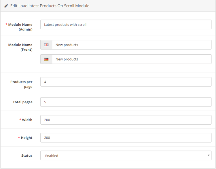 - Go to Extensions -> Modules -> Digitcart - Load latest Products On Scroll -> Install -> Configure it